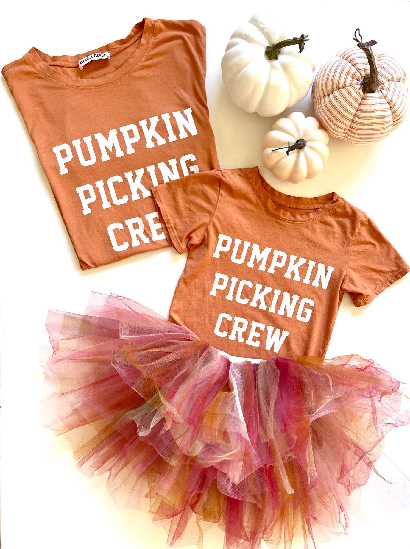 Grab your Pumpkin Picking crew tees and head to the pumpkin patch. These festive caramel colored Pumpkin Picking Crew tees are perfect for the pumpkin patch.